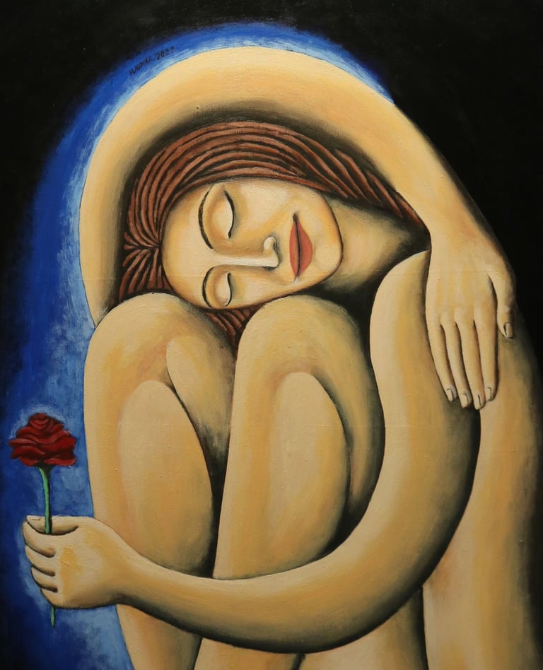 With over two decades of experience in the visual arts, Hesham Nawar draws on historical, literary, and artistic traditions to reinterpret the human body—especially the female body—as a universal symbol of beauty, vulnerability, and contemplation. At the heart of Sleeping Beauties lies a recurring pose inspired by the ancient Egyptian block statue—a form known for its minimalism and spiritual presence.